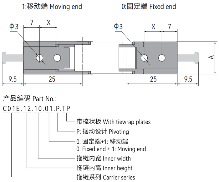 *A1|A2|A3|A4訂購(gòu)預(yù)裝配拖鏈請(qǐng)注明安裝方式
