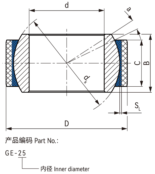 ● GE軸承采用帶有耐磨層的復合材料制成外環(huán),內(nèi)裝表面鍍硬鉻鋼球