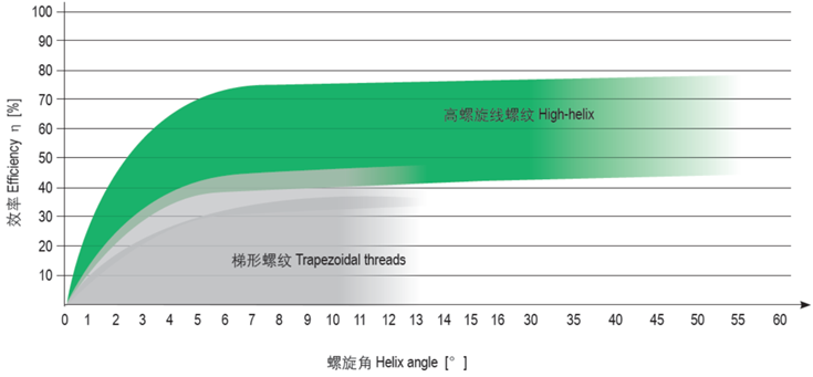 效率是輸出功率與輸入功率的比值。CSB-LIN?導(dǎo)向螺母具有低摩擦系數(shù),因此有很高的效率。