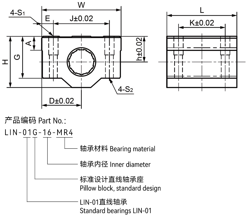 ●內(nèi)部安裝LIN-01-MR4直線軸承