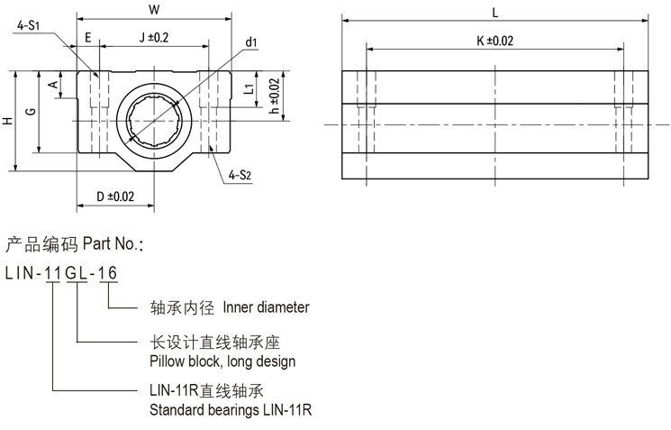 ●內(nèi)部安裝2個LIN-11R直線軸承