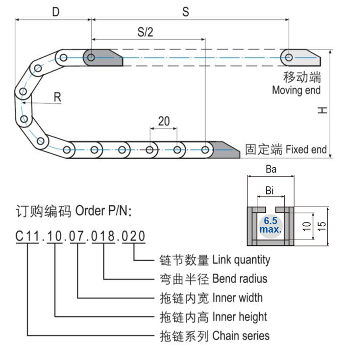 C11.10微型塑料拖鏈體積極小,基于一片式設(shè)計(jì)重量輕特別適用于高速運(yùn)動(dòng)。C11.10微型塑料拖鏈適用于較小安裝空間,多種尺寸規(guī)格可選。